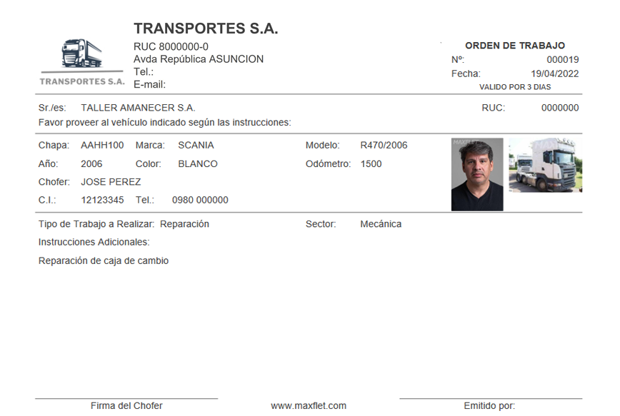 Una orden de trabajo es un documento que detalla por escrito las instrucciones y especificaciones de un servicio a realizar al vehículo ya sea instalaciones, mantenimientos, reparaciones, etc. Además, puede ser enviado por correo electrónico u otro medio digital como WhatsApp, facilitando así la comunicación entre tú y el taller.